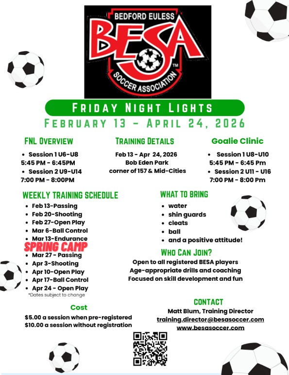 Friday Night Lights is a weekly event that will take place during BESA's soccer season. It's a great time for players to get extra touches or get some exposure to soccer outside of team practice.